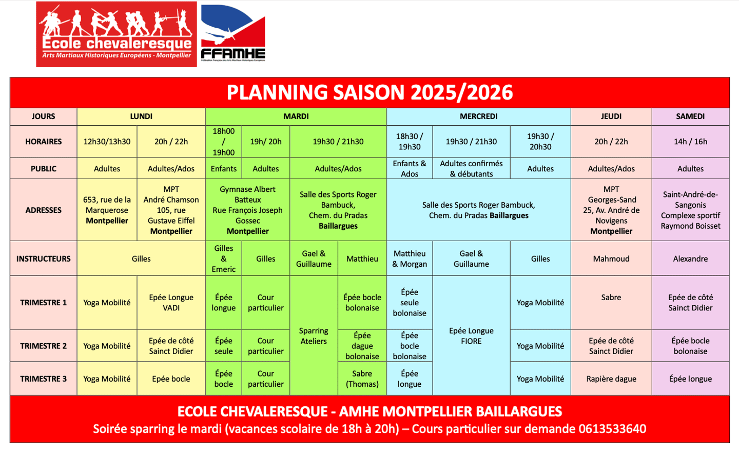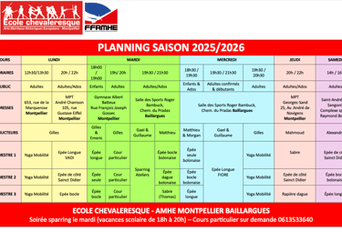 Conçu pour répondre aux besoins spécifiques de chaque pratiquant, ce créneau offre une opportunité unique d'améliorer vos compétences techniques, tactiques et physiques dans un cadre adapté à vos objectifs personnels. Ouvert à tous, quel que soit votre niveau, ces sessions d'entraînement personnalisé sont parfaites pour les débutants cherchant à découvrir les bases comme pour les pratiquants avancés souhaitant perfectionner leurs techniques. pdf planning